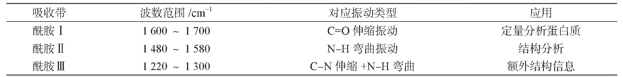 表3 蛋白质检测常用吸收带及其对应的波数范围和振动类型
