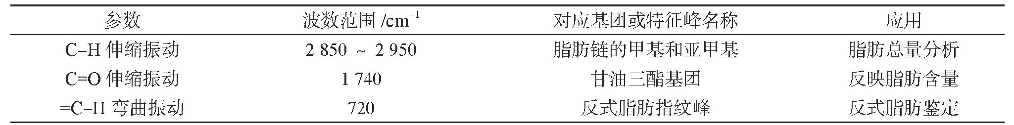 表4 脂肪测定中常用参数及其对应的波数范围、基团