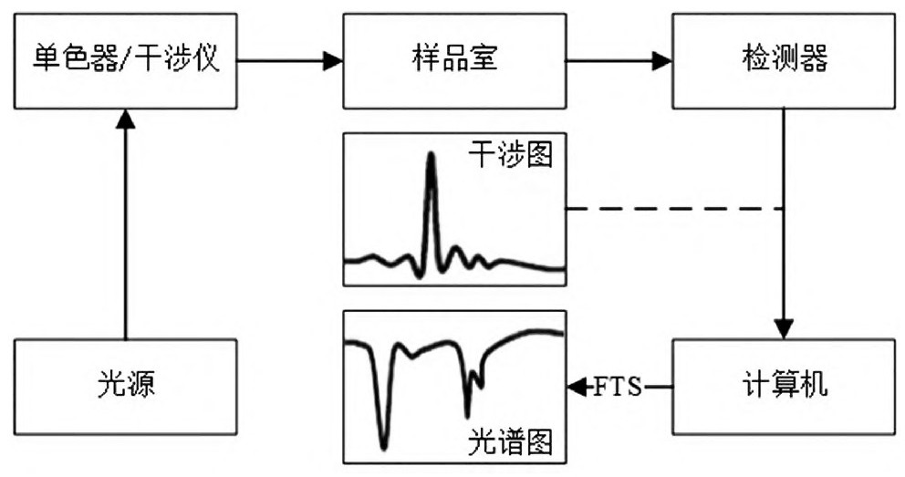 红外光谱检测基于分子的特征振动,当特定频率的红外光照射到食品样品时,食品中的化学键(如C-H、O-H、N-H、C=O等)会选择性吸收某些波长的光,导致透射光的强度降低,从而形成特征光谱。通过分析这些特征吸收峰的位置和强度,可以确定食品的化学组成及分子结构。红外光谱仪主要由光源、单色器/干涉仪、样品室、检测器以及计算机等组成,如图1所示。