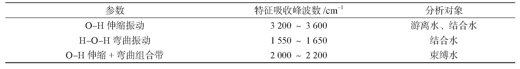 表2 水分含量检测常用参数、对应的特征吸收峰及适用的分析对象