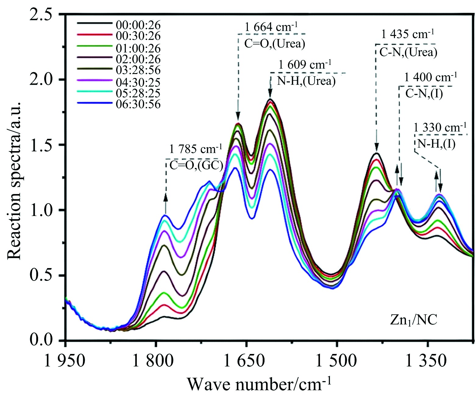 Fig.4 Monitoring the carbonylation reaction courseover Zn1/NC catalyst by in-situ FTIR